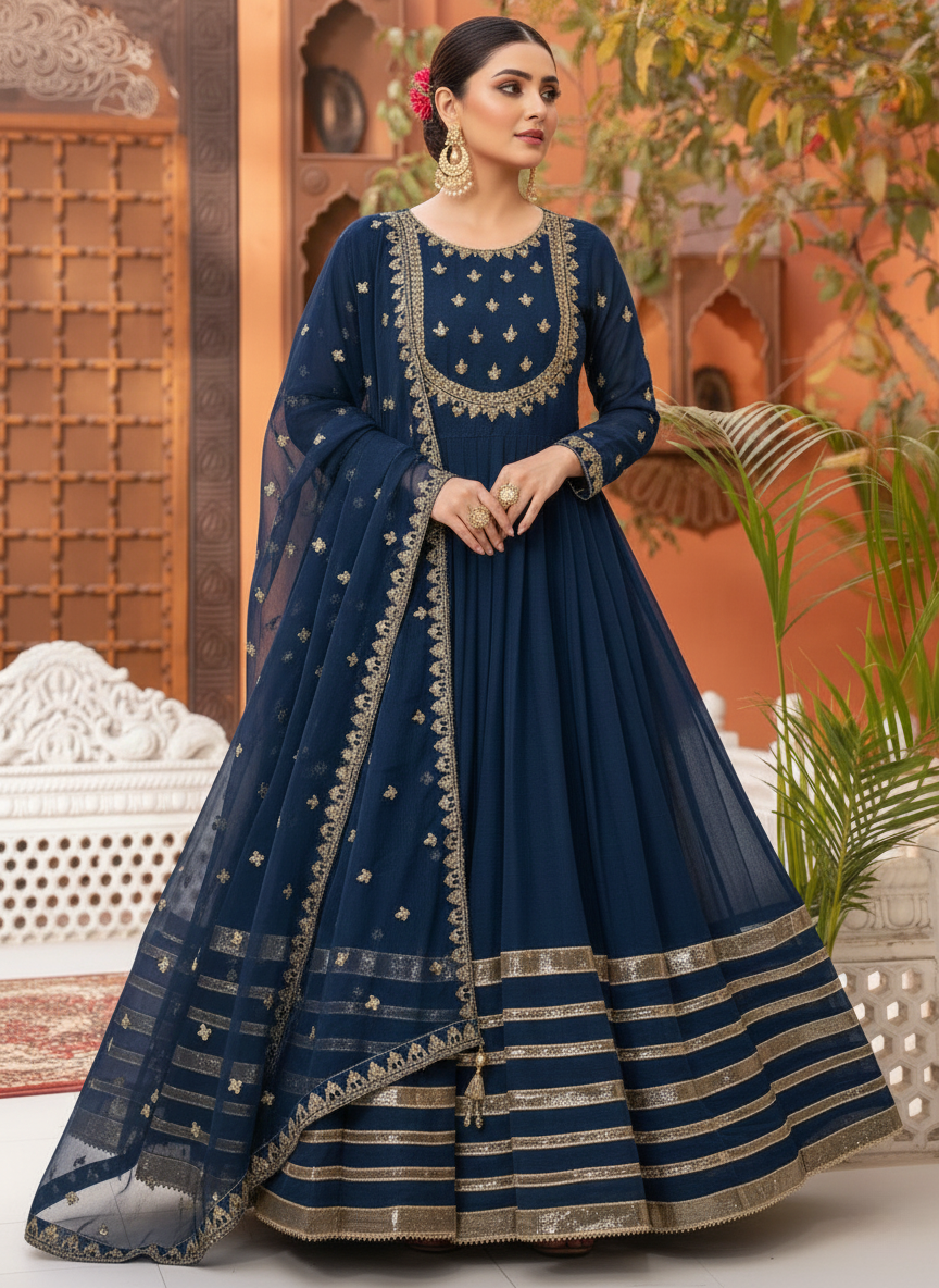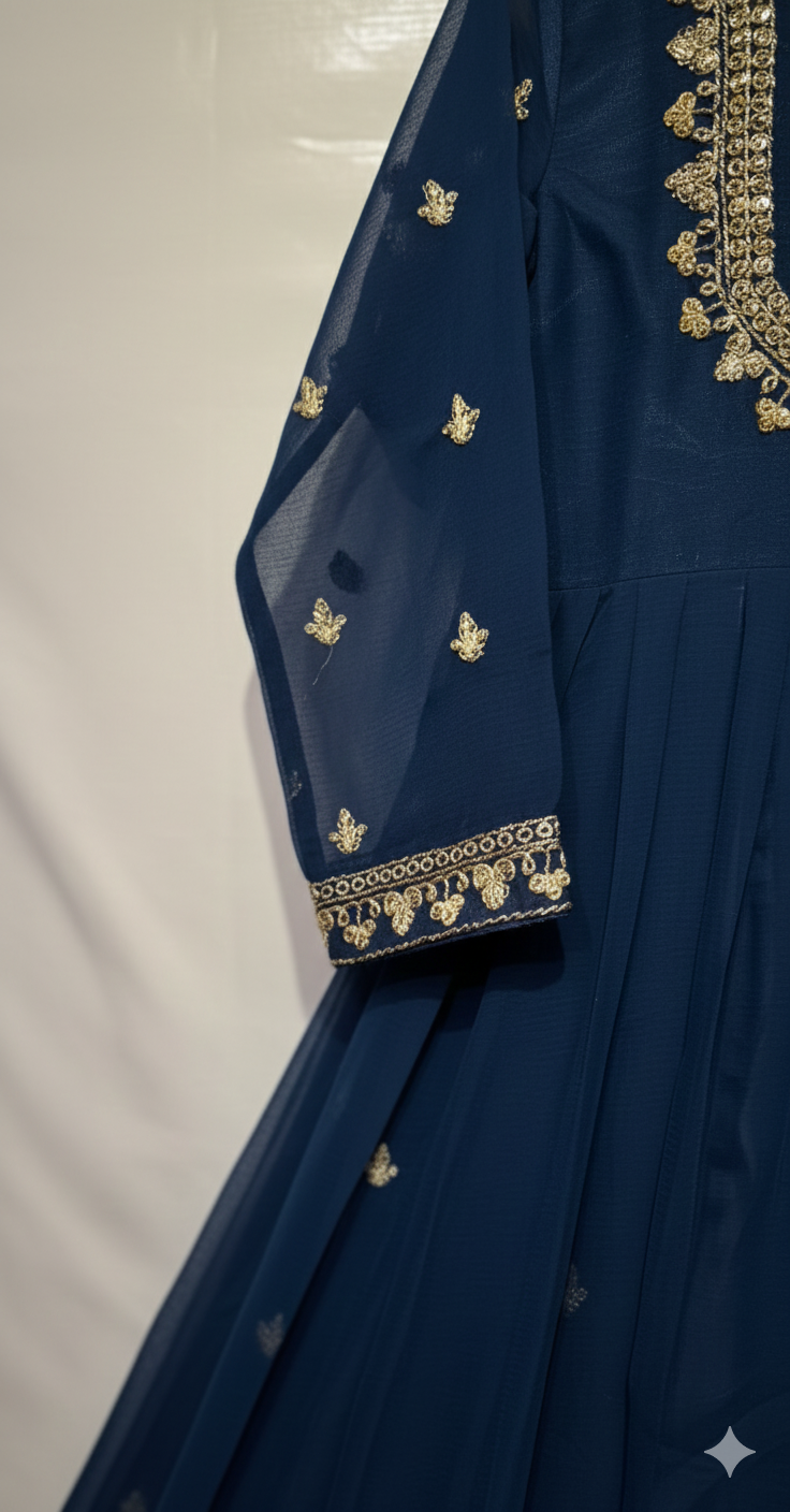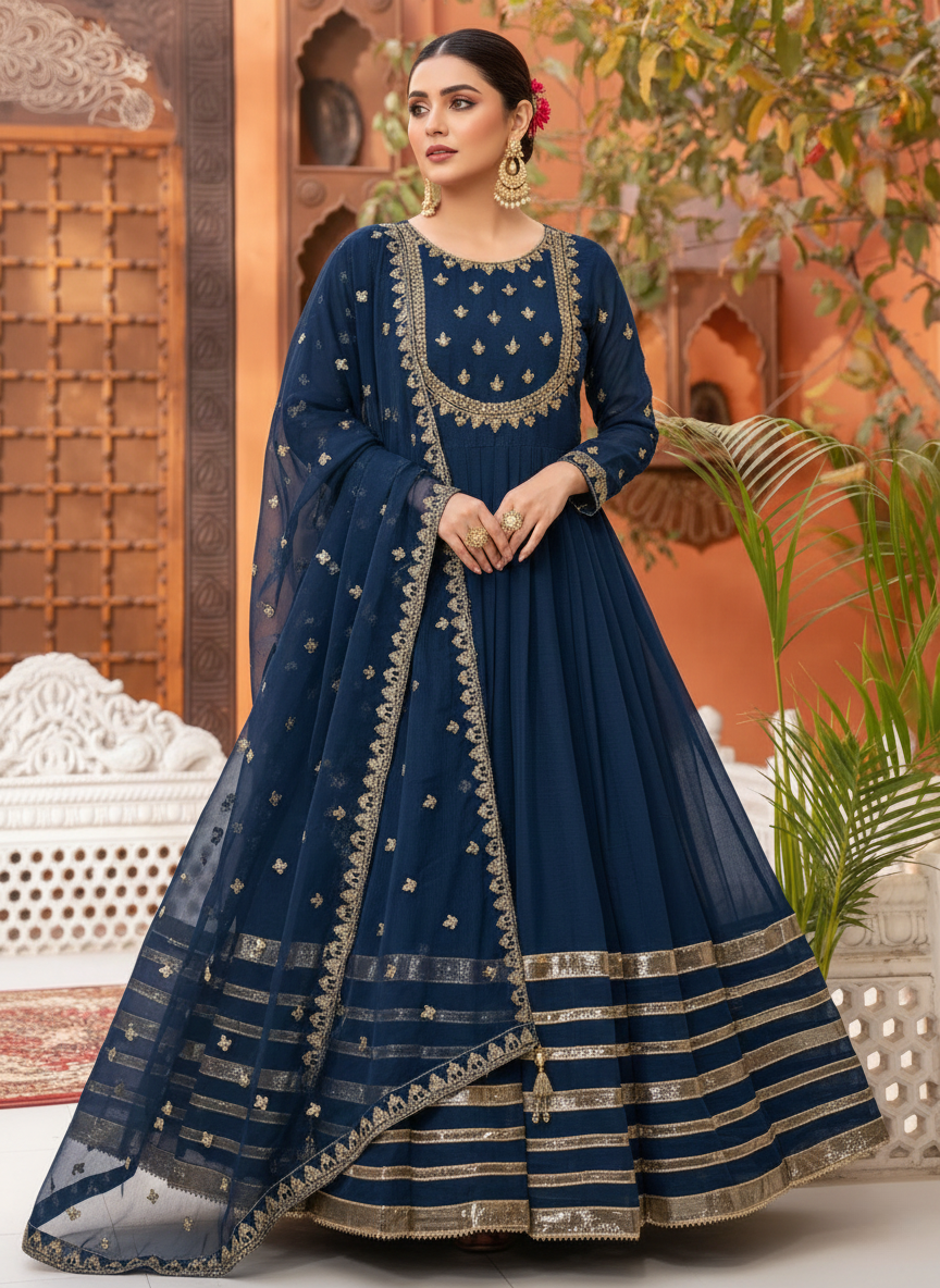This Zairah luxury chiffon ensemble is perfect for anyone who loves timeless fashion, intricate craftsmanship and a truly majestic look.
